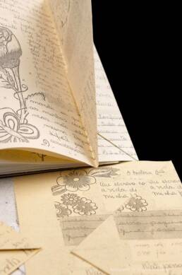 A testimonial book composed of clippings from letters written by women participating in the Reading and Writing Workshop of the Caixa Postal Project at the Florianópolis Women's Prison. The program promotes the exchange of letters between the participants and women deprived of liberty through a "post office box." This device delivers books to the prison and returns with texts created by the women, expressing their emotions and perceptions—an authentic record of themselves.