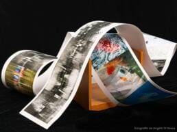 An artist's book about the experience unfolding in a region of lakes and native forest in São Paulo, Brazil. This photographic work features printed images juxtaposed from a close look at the lake's edge. These are moments captured where the water's surface and the ripples caused by the movement of the wind reflect the water's mirroring. The horizon line subverts the notion of space, as there is no longer above or below, but water above and below, mirroring each other without mirroring.