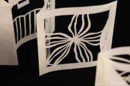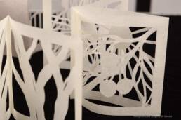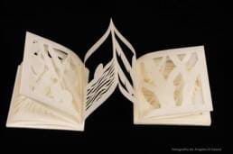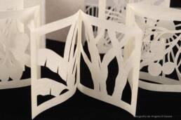 The book is about the artist's memories with her grandmother, with whom she spent the pandemic and her last moments together at the "Vale do Sol" ranch. Using the Japanese paper-cutting technique, the images reveal small fragments of their memories created in this place. The lines and shadows merge into a narrative that seeks to honor her grandmother's passing and to materialize the longing for a time that will never return.