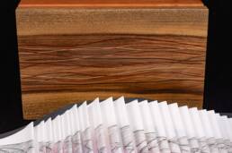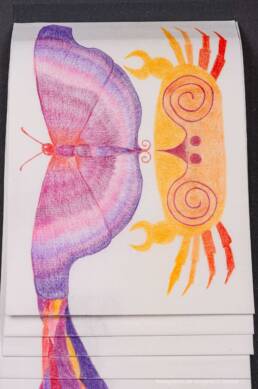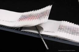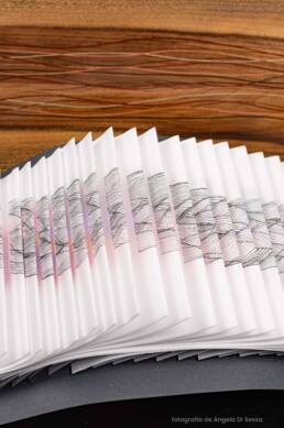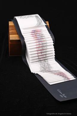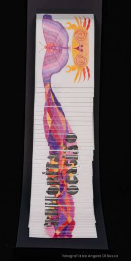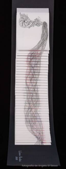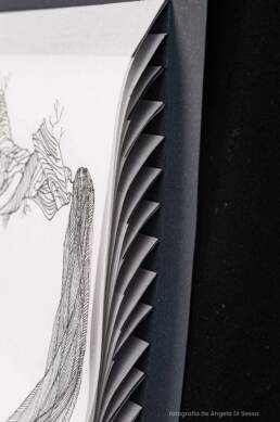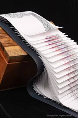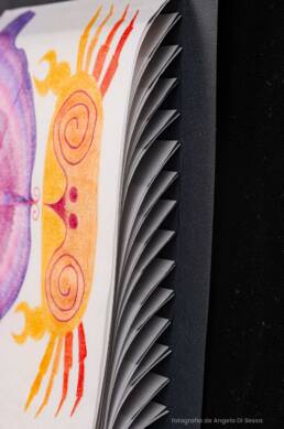 This project is based on the Dragon Scale Bookbinding format. Its inspiration comes from the intersection of Remédios Varo's work Homo Rodans with the quote by Niccolò Machiavelli, quoted in Georges Didi-Huberman's book Images – Occasions, about the passage of Miss Occasion, which is integrated into the book's pages. She was portrayed with Indian ink, and her passage was painted with colored pencil.