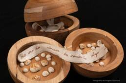 The book was born after a trip to the seaside, when I felt the world's smallest seashells beneath my feet—completely or almost completely devoid of color, tiny, and extremely fine. I realized that, within the curve of the shell there was something hidden. What do they take and bring back from their journeys across the seas? What do they hide in this come and go? They are carapaces, shells, cocoons, their own islands—hence the name Poseidonia.