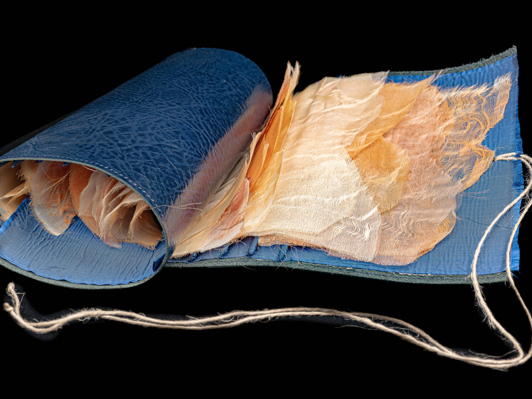 El viaje a través de mares, tierras y sueños es siempre tanto físico como espiritual. Esta obra relata el murmullo de las arenas, donde he sucumbido innumerables veces, regresando a mitad de camino. Ya me he aventurado en muchos viajes: cerámica, escultura, derecho, diseño, poesía, encuadernación, y hoy despierto, surcando las arenas en el arte del libro de artista.