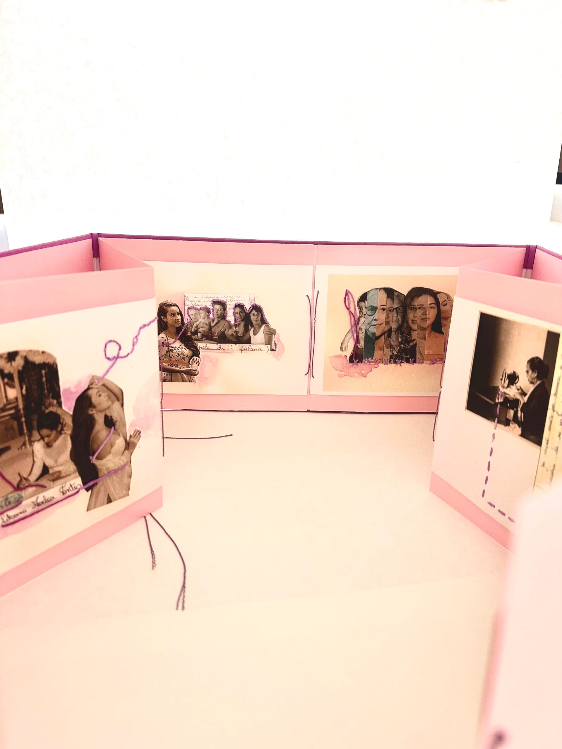 O projeto emerge para resgatar as figuras ancestrais da artista. Mais do que uma recuperação de memórias, a obra propõe a criação uma genealogia feminina, que acolhe o passado com reverência e o reinventa pela fabulação. Ao intervir em fotos antigas das antepassadas com colagem, bordado e aquarela, a artista busca uma atmosfera inventiva, para refletir a força e a coexistência dos laços entre mulheres através das gerações.